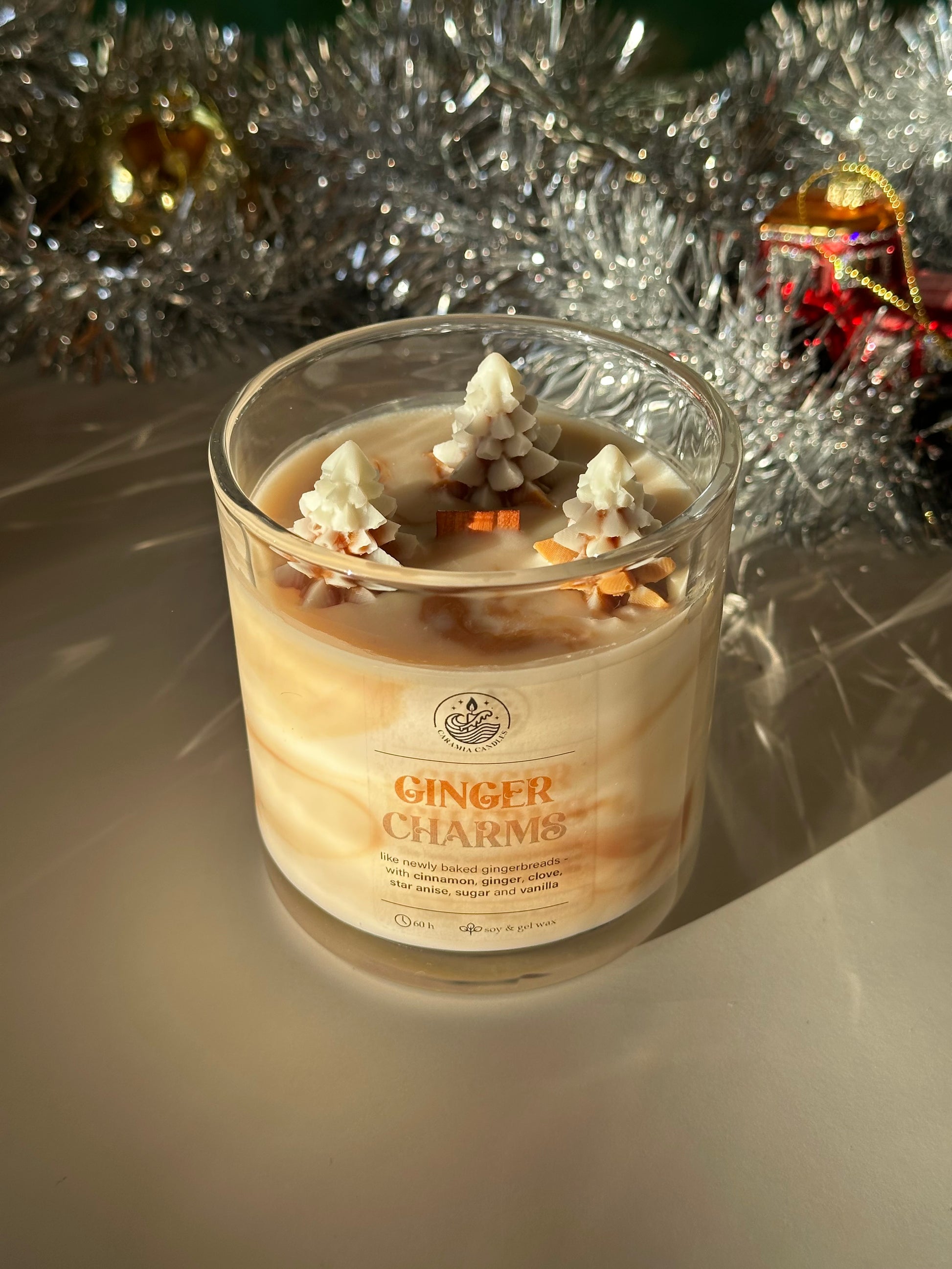 Ginger Charms är den mjuka pepparkaksdrömmen i Winterbound. En topp av finmalen kanel möter riven ingefära, stjärnanis och kryddnejlika. Basen smälter samman till nygräddade kakor, lönnsocker och fyllig vanilj från Madagaskar.